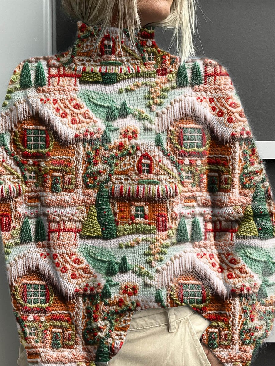 Lovely Christmas House Art Print Knit Turtleneck Pullover Sweater