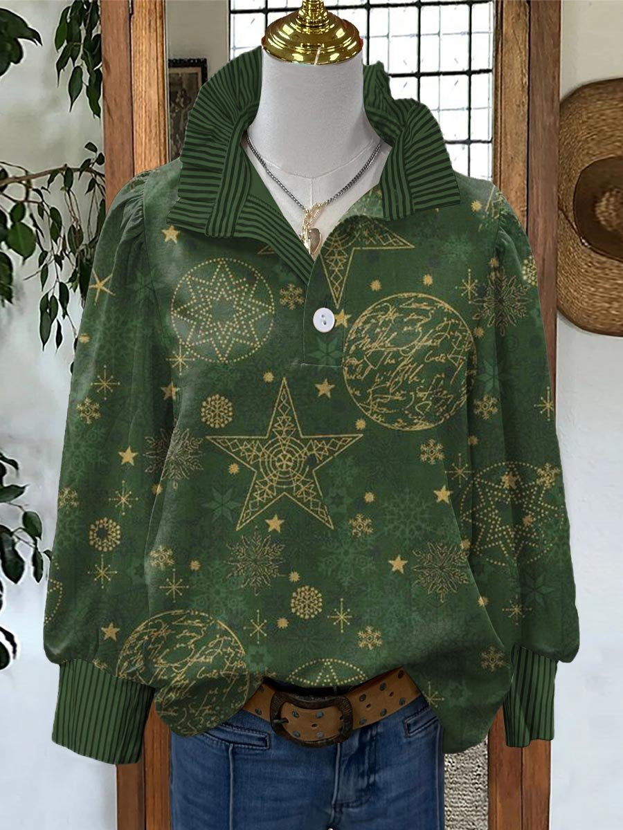 Lovely Christmas Snowflake Art Print Casual Long Sleeve Comfortable Cotton Shirt