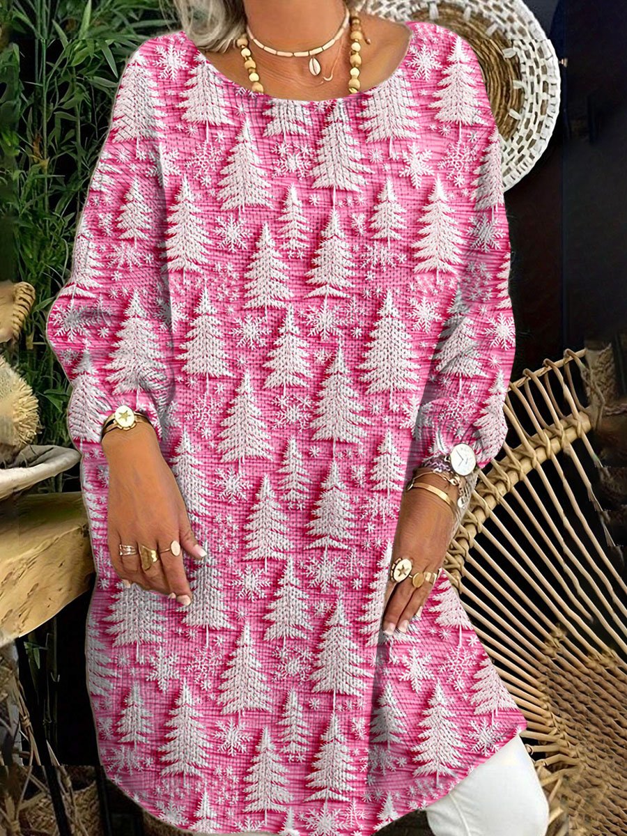 Lovely Christmas Tree Art Print Casual Pullover Sweater Dress