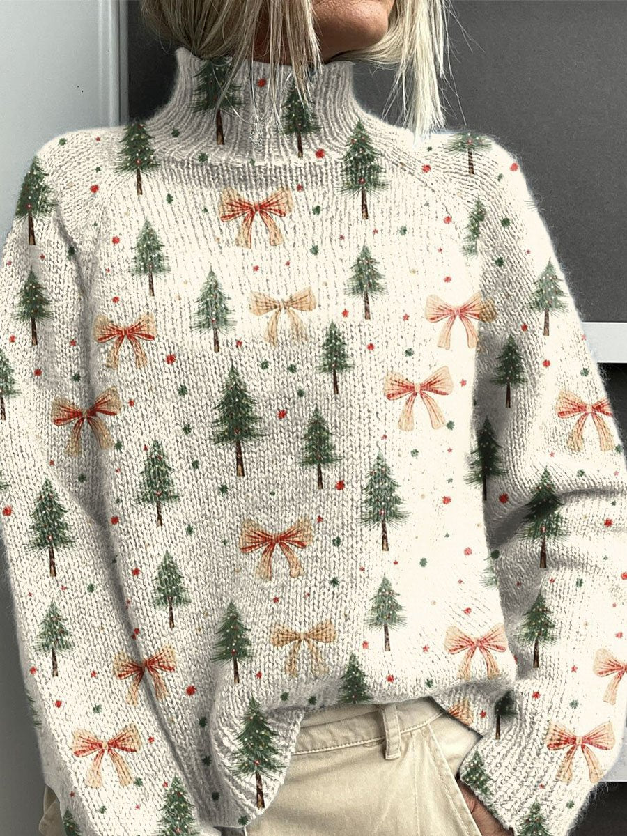 Lovely Christmas Tree Art Print Knit Turtleneck Pullover Sweater