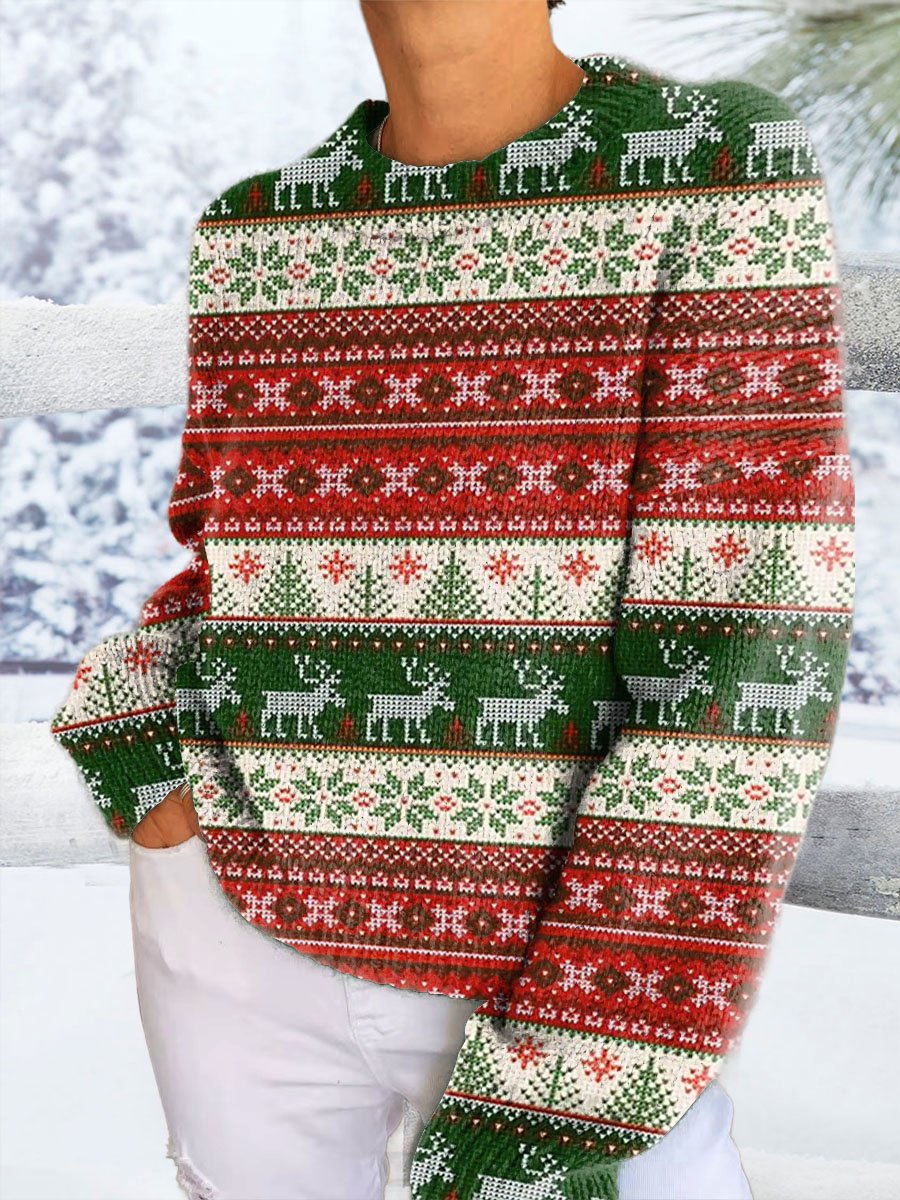 Lovely Christmas Tree Deer Art Print Casual V-neck Pullover Knit