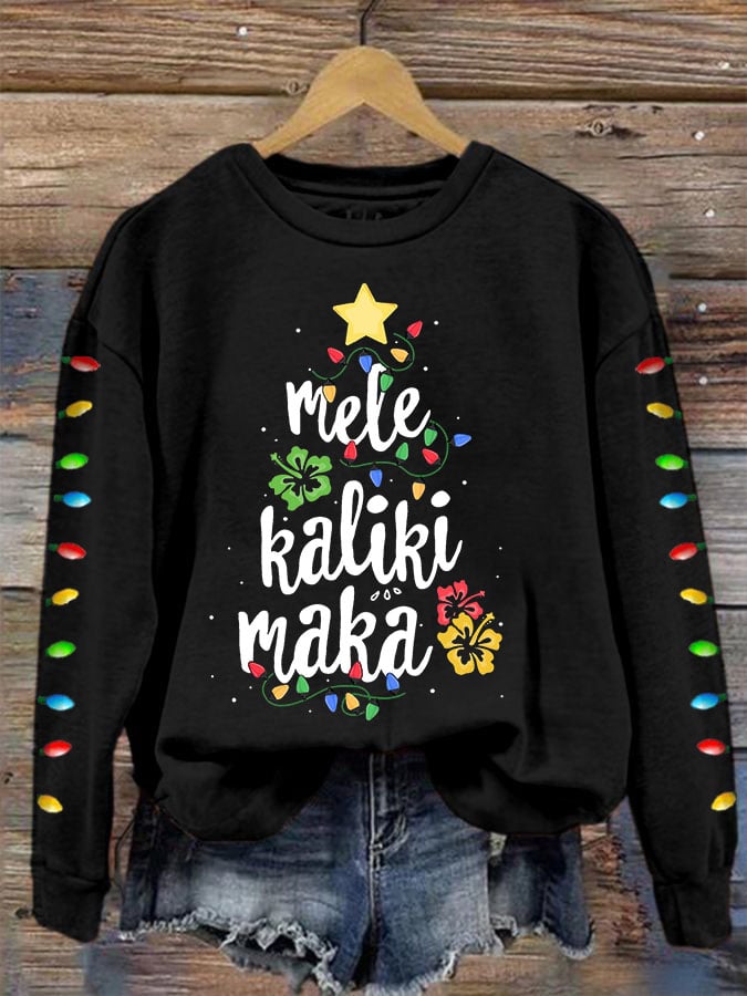 Mele Kalikimaka Hawaii Christmas Print Sweatshirt
