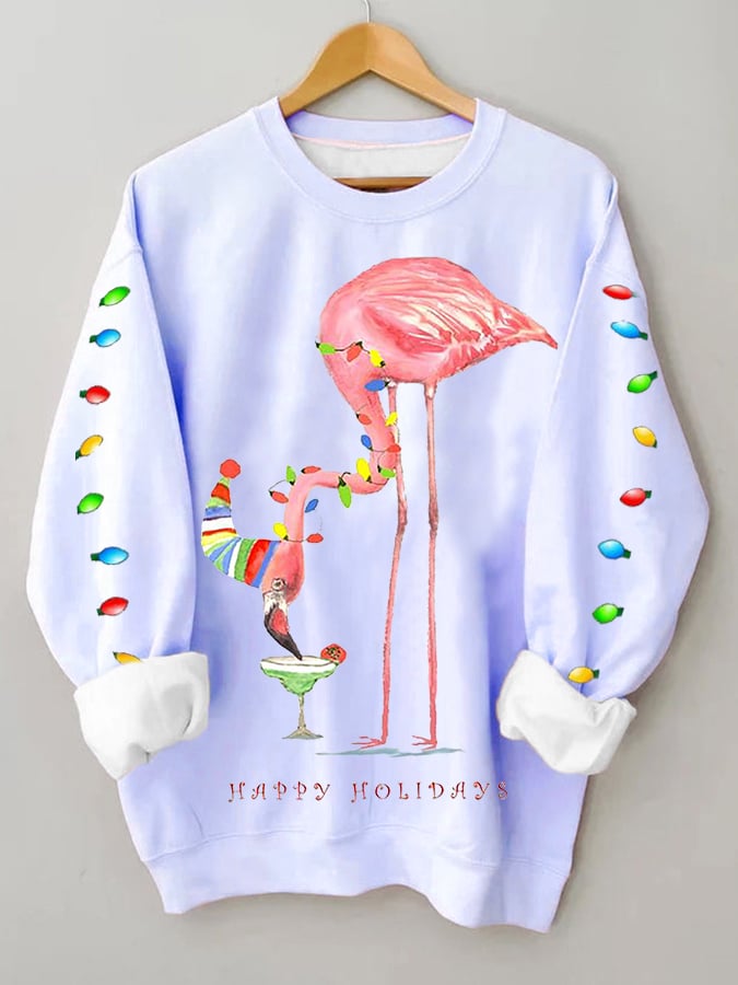 Merry Christmas Flamingo Fun Print Casual Sweatshirt