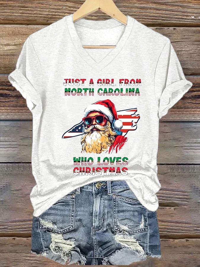 North Carolina Christmas Print Casual T-Shirt