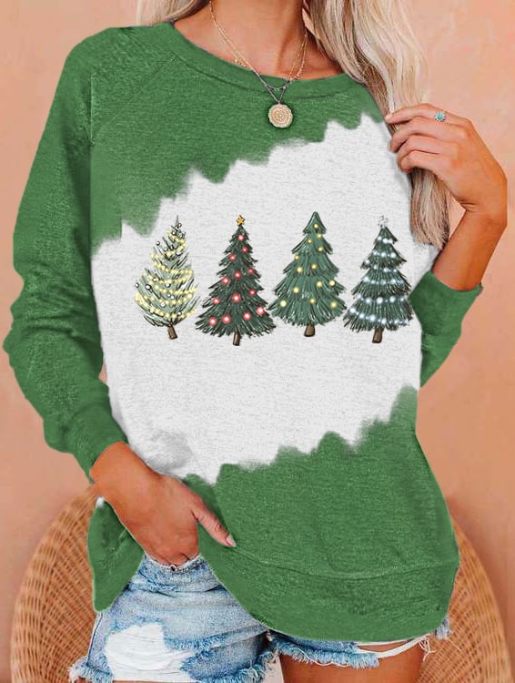 Pink Christmas Tree Print Sweatshirt