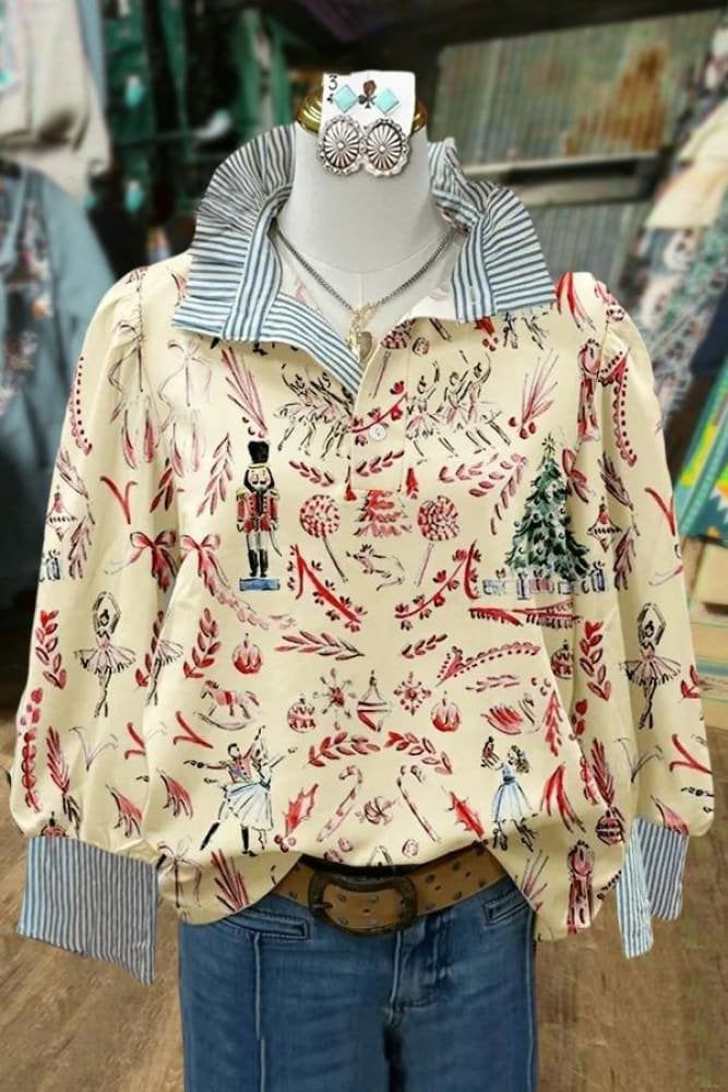 Retro Christmas Print Casual Long Sleeve Comfortable Top