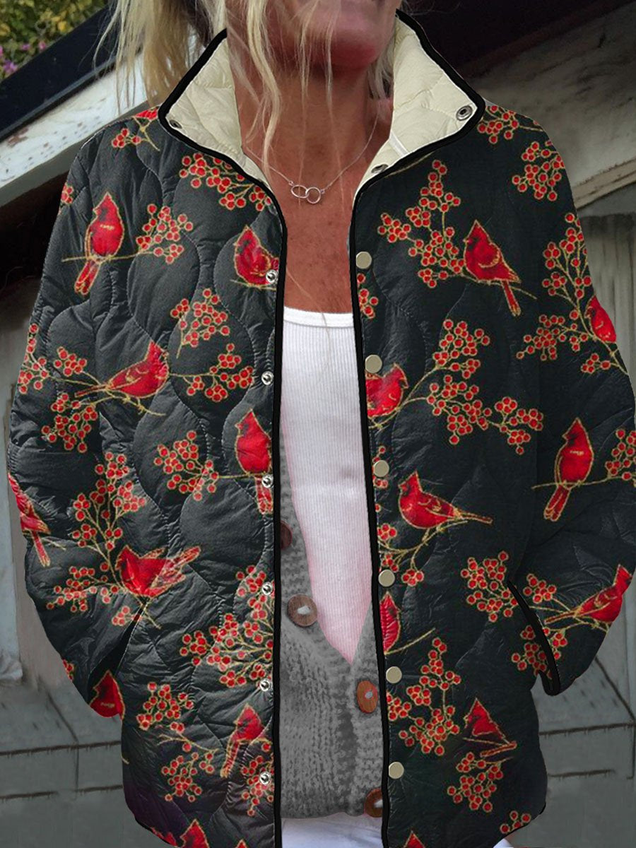 Vintage Christmas Art Print Casual Quilted Jacket