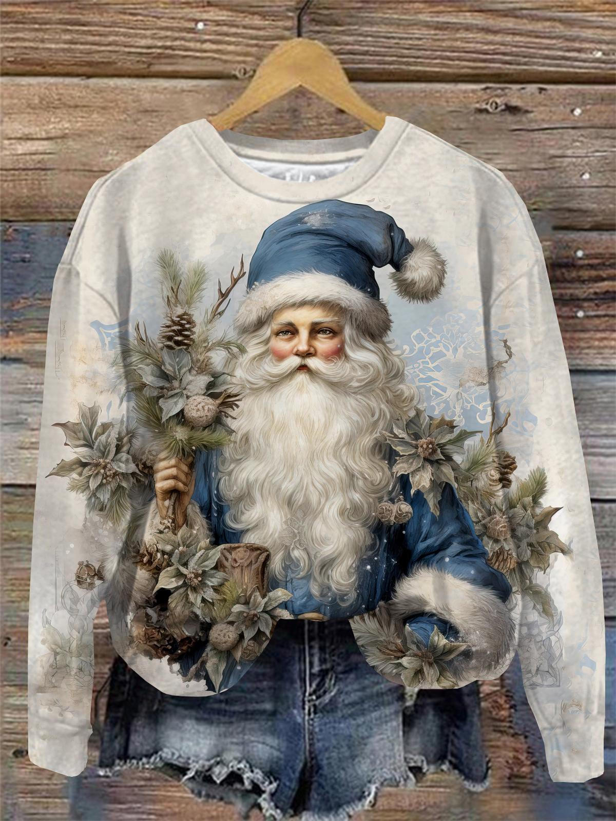 Women's Vintage Santa Claus Print Round Neck Long Sleeve Top